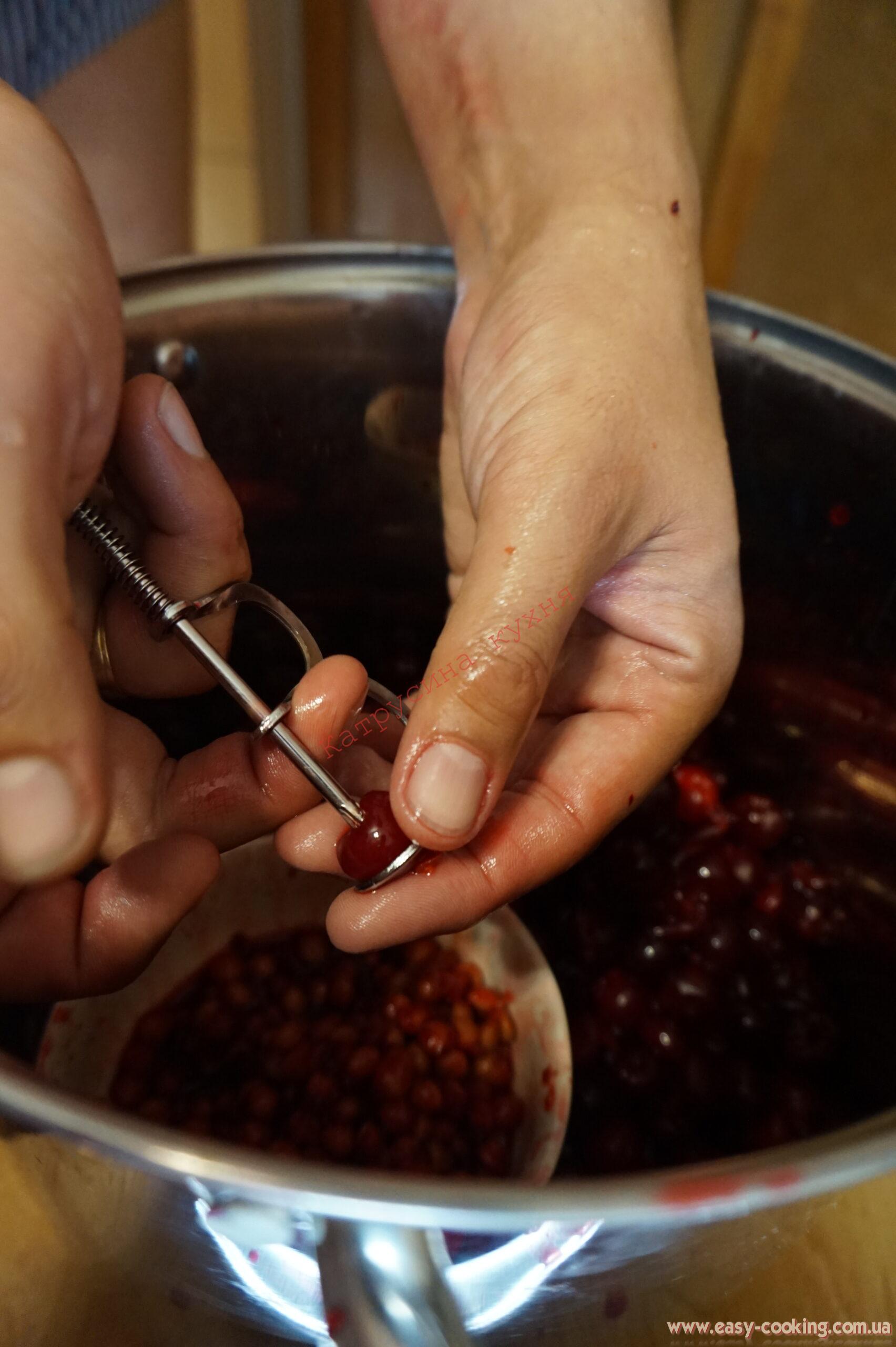 Перший етап – найдовший, це очищення вишень від кісточок.