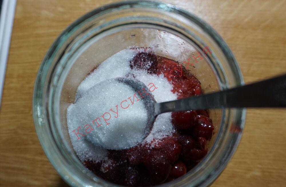 На 1 літрову банку очищених вишень даємо 4 ст.л. цукру